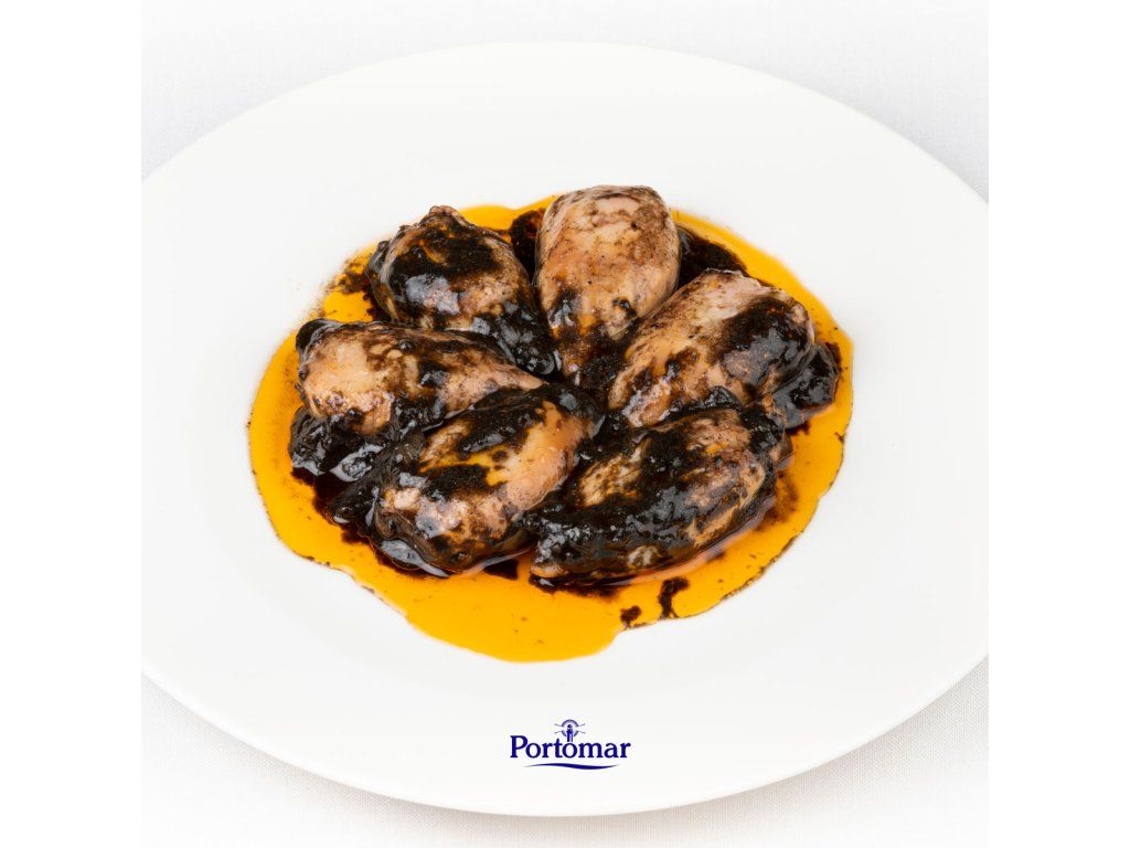 Chipirón Relleno en su Tinta "Portomar" 115 g — to jsou konzervované chobotnice, plněné a připravené ve vlastní inkoustové omáčce podle tradičního španělského receptu.